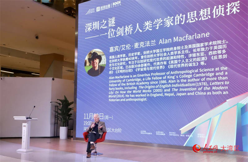 艾伦·麦克法兰介绍,他长期对侦探学抱有浓厚兴趣,并将这种通过假设验证、向目击者取证的思维方式运用于学术研究。在《深圳之谜》中,他以侦探视角切入,通过与深圳的建筑师、律师和学者等亲历者进行深度对话,获取一手线索,在验证假设的过程中逐步还原城市发展的底层逻辑,为理解深圳崛起提供了独特的研究视角。