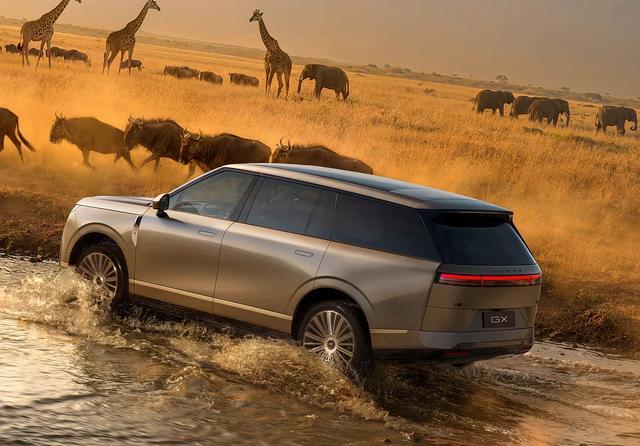 大面积封闭的车鼻没有太多波澜,迎来了梯形下格栅,左右两侧插入了纵向的大灯组,这一组合一方面延续了家族特征,另一方面又有着较大的差异化,算得上全新的体验。车身侧面,揽胜风格的线条是时下最为流行的元素,但实际上C柱之后,又有一些小鹏X9的视觉效果,像该车的名字一样,融合的G系列和X系列。